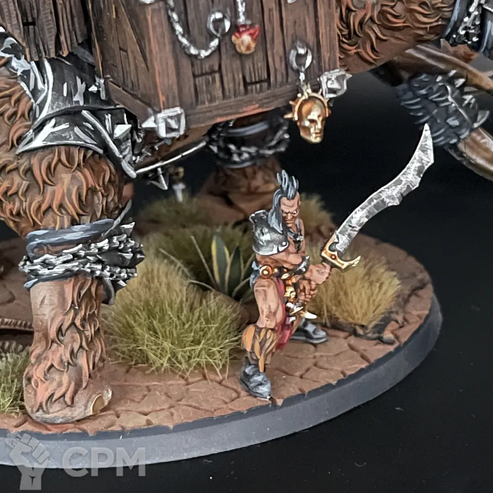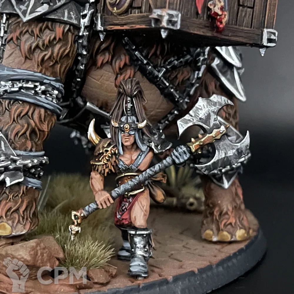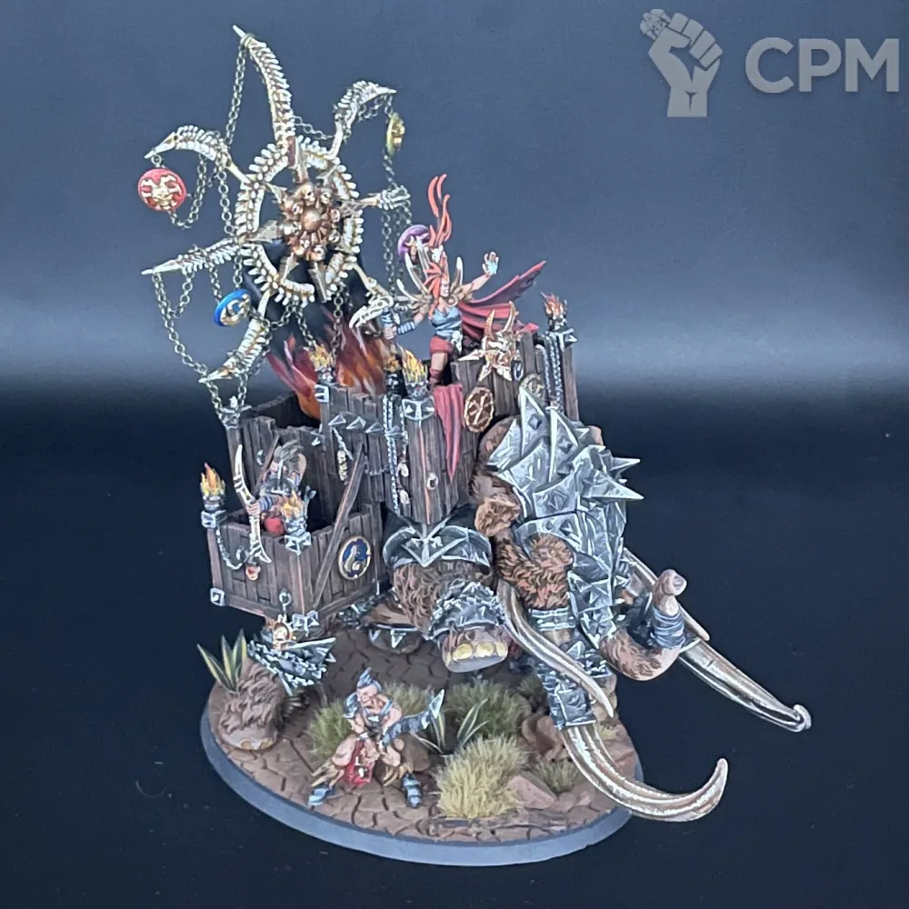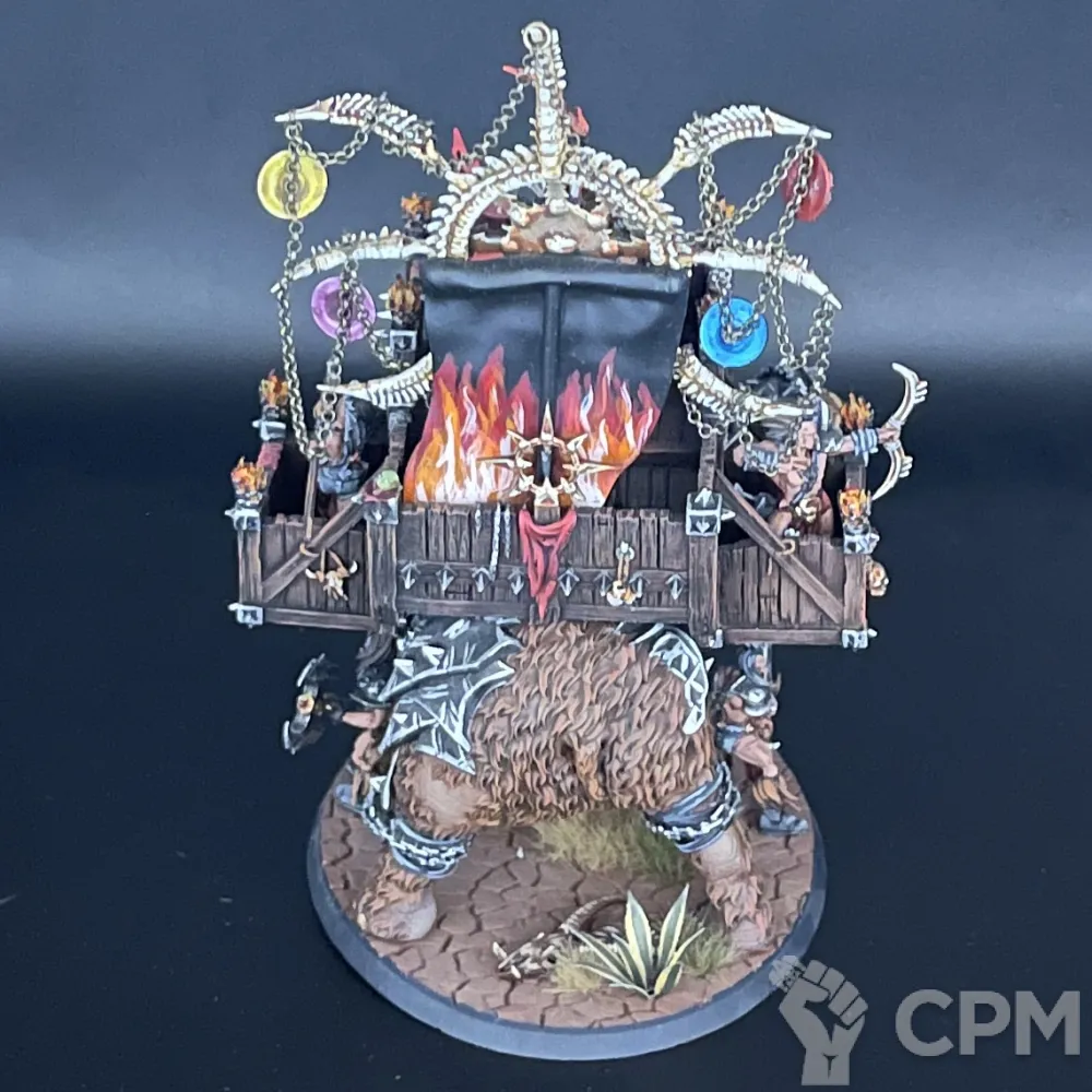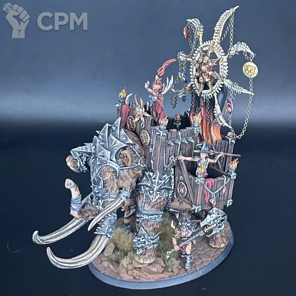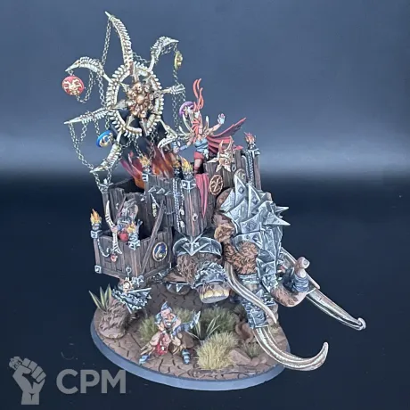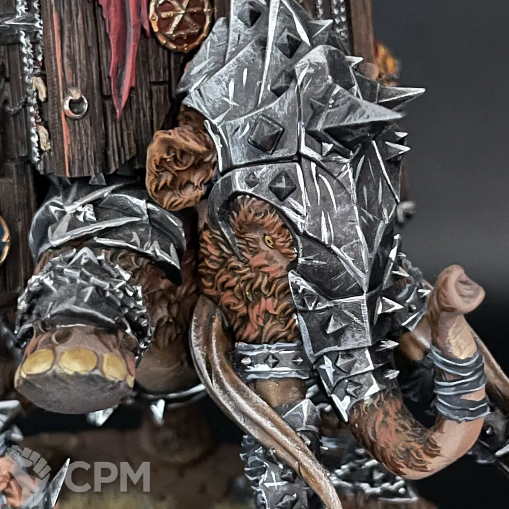 Шикарный Хаос Варшрайн в виде мамонта, полностью моя идея в реализации. К сожалению, выпилили из армибука слейвов, поэтому если просто хотите себе такого зверя на полку для красоты, либо брать правила из легенд на варшрайн, либо в качестве уникального созданного генерала для кампании Path to Glory.