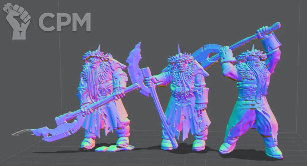 3 миниатюры. Напечатаны на высококачественной смоле для миниатюр Conjure Sculpt Grey на принтере с разрешением 10к.