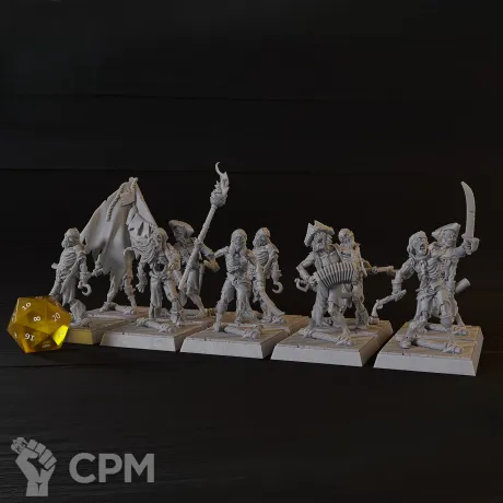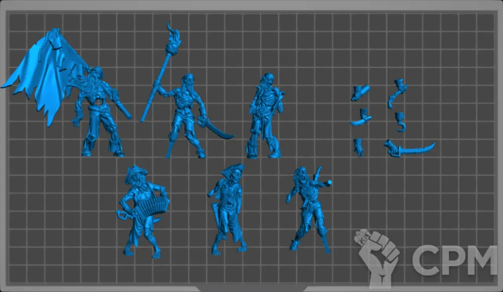 Десятка зомби пиратов. Один флагоносец , один факелоносец , музыкант и 7 зомбей (скульпты и оружие зеркалится). Базы в комплект не входят. Модели изготовлены при помощи фотополимерного 3д принтера elegoo saturn 4 ultra (качество печати - 12k) Состояние модели: новое. Модели отчищены от поддержек, промыты и засвечены. Печать проводится фотополимерной смолой Conjure Standard!