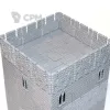 Размер базового элемента 35 на 35 мм. Такие образом ширина тройной башни 105 мм, а высота 4 этажей, без учета венца — 140мм.