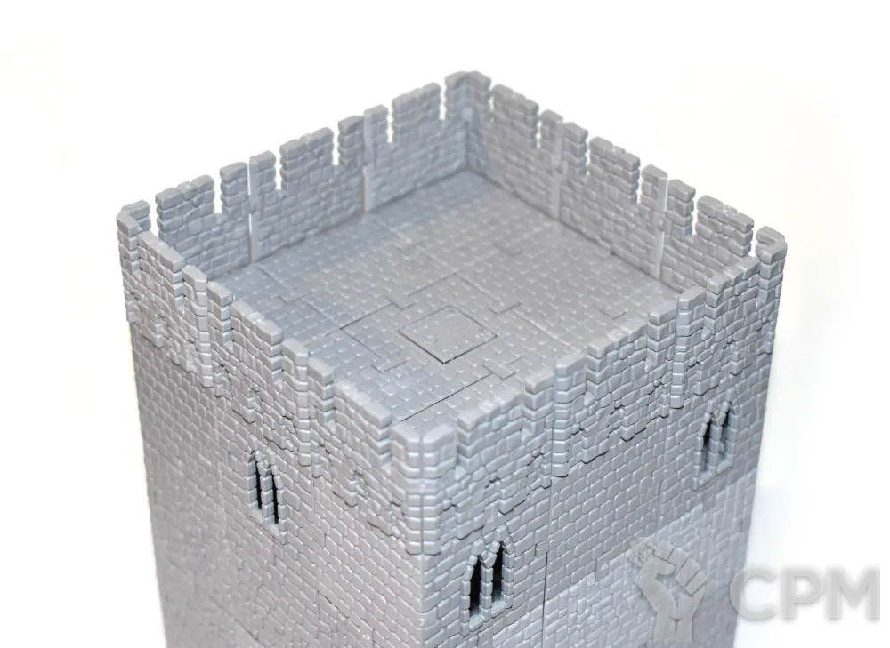 Набор включает достаточно деталей для того чтобы собрать одну башню шириной 3 на 3 стены и высотой в 4 этажа, как показано на картинке.