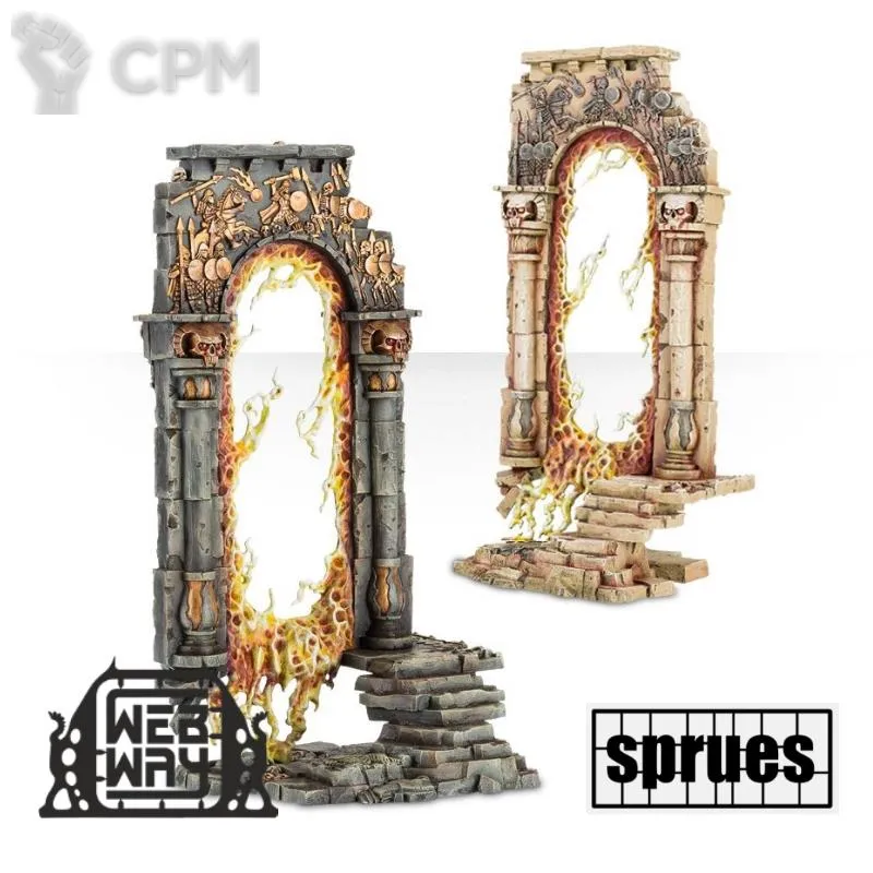 Нестабильные, мерцающие заклинаниями и неестественным светом, Зловещие Врата царств являются артефактами проклятой власти Темных Богов. Только самые храбрые воины могут попытаться пересечь границы миров из-за опасности быть сожранными демонами, только наиболее мощные волшебники могут подчинять себе врата на время - ибо из-за темной порчи смертный ум не может подчинять врата надолго.
