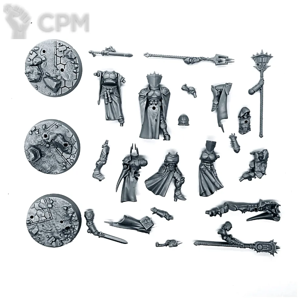 Качество литья на высоте, как и упаковка с доставкой, но т.к. все детали сняты с литников и лежат в одном пакетике, не уверен, насколько просто будет собирать миньки, вылавливая детальки из большой кучи. В пакете на фото отряд из 10 сестер битвы