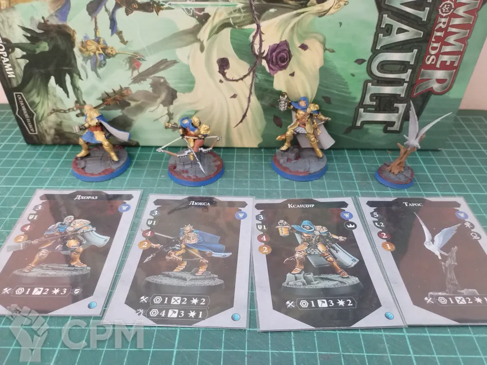 Хорошая 3д печать. Почти полностью собраны, для удобства покраска. Покрас начат, но не закончен. Карты оригинал на русском и есть карты для 2й редакции.
