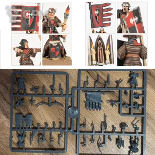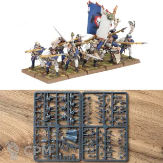 Миниатюры.Фигурки представляют различные армии, включая Империю, Орков, Эльфов, Гномов, Хаос и Нежить. Миниатюры включают героев, войска, монстров и боевые машины.