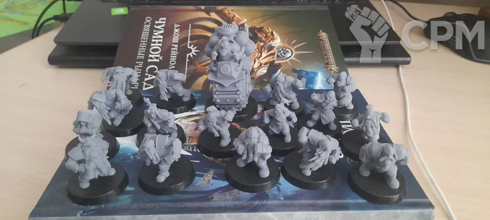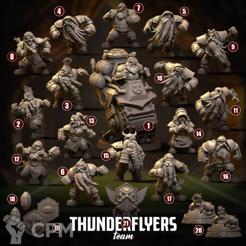 Команда дварфов Thunderflyers от Punga, печать хорошего качества, 16 игроков + ДезРоллер. Базы с магнитами.