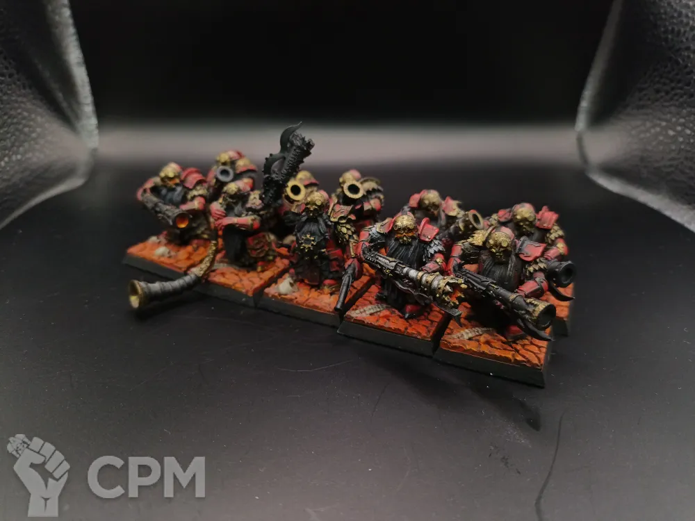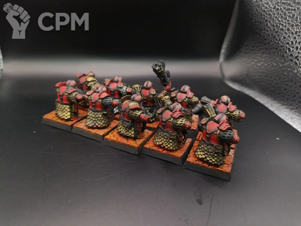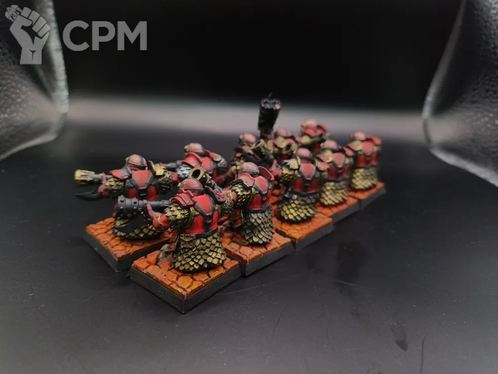 Инфернальная стража дварфлв хаоса с огненнцми глефами. 3д печать. Покрас. Комсквад только чемпион и музыкант.