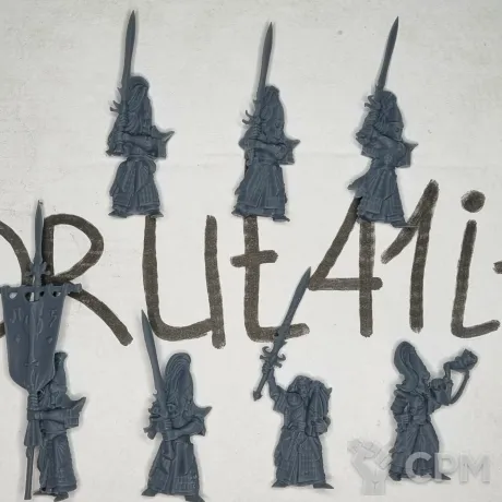 Выиграл на аукционе отряд касркин из 14 моделей. Качество печати отличное, со следами поддержек, как и было заявлено в описании аукциона. При отправлении упаковали как иглу Кощея: каждая модель в отдельном пакете, отдельный пакет в отдельной пупырке, отдельная пупырка в общей пупырке, общая пупырка в коробке (коробка в зайце, заяц в соколе и т.д.). Все пришло небитым, некрашеным. Будете покупать или выиграете на ауке, докупите сразу базы.