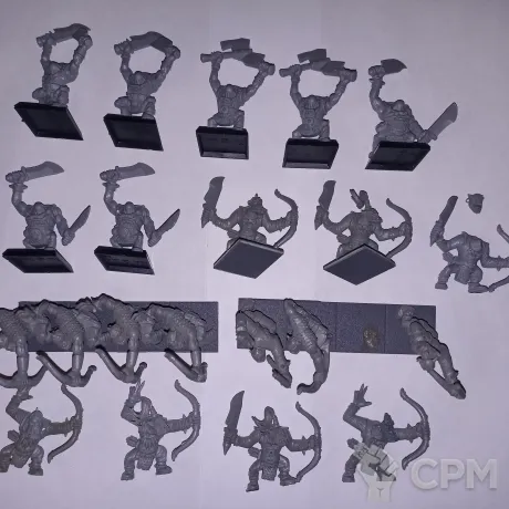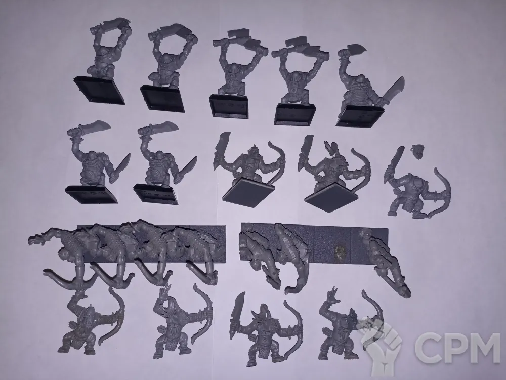 7 стартерных орков с парными чоппами на подставках и 14 лучников без подставок. Головы есть для всех.