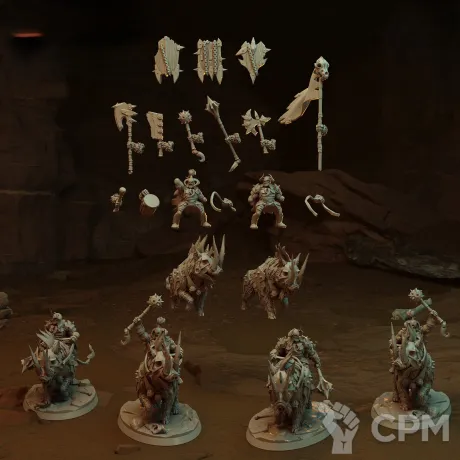 Вариативный набор орков - наездников в закачках на ваш выбор : барабанщик , знаменосец , щитоносец .Цена указана за одну(!!!) модель без базы. Базы приобретаются отдельно! Модели изготовлены при помощи фотополимерного 3д принтера elegoo saturn 4 ultra (качество печати - 12k) Состояние модели: новое. Модели отчищены от поддержек, промыты и засвечены. Печать проводится фотополимерной смолой Conjure Standard!