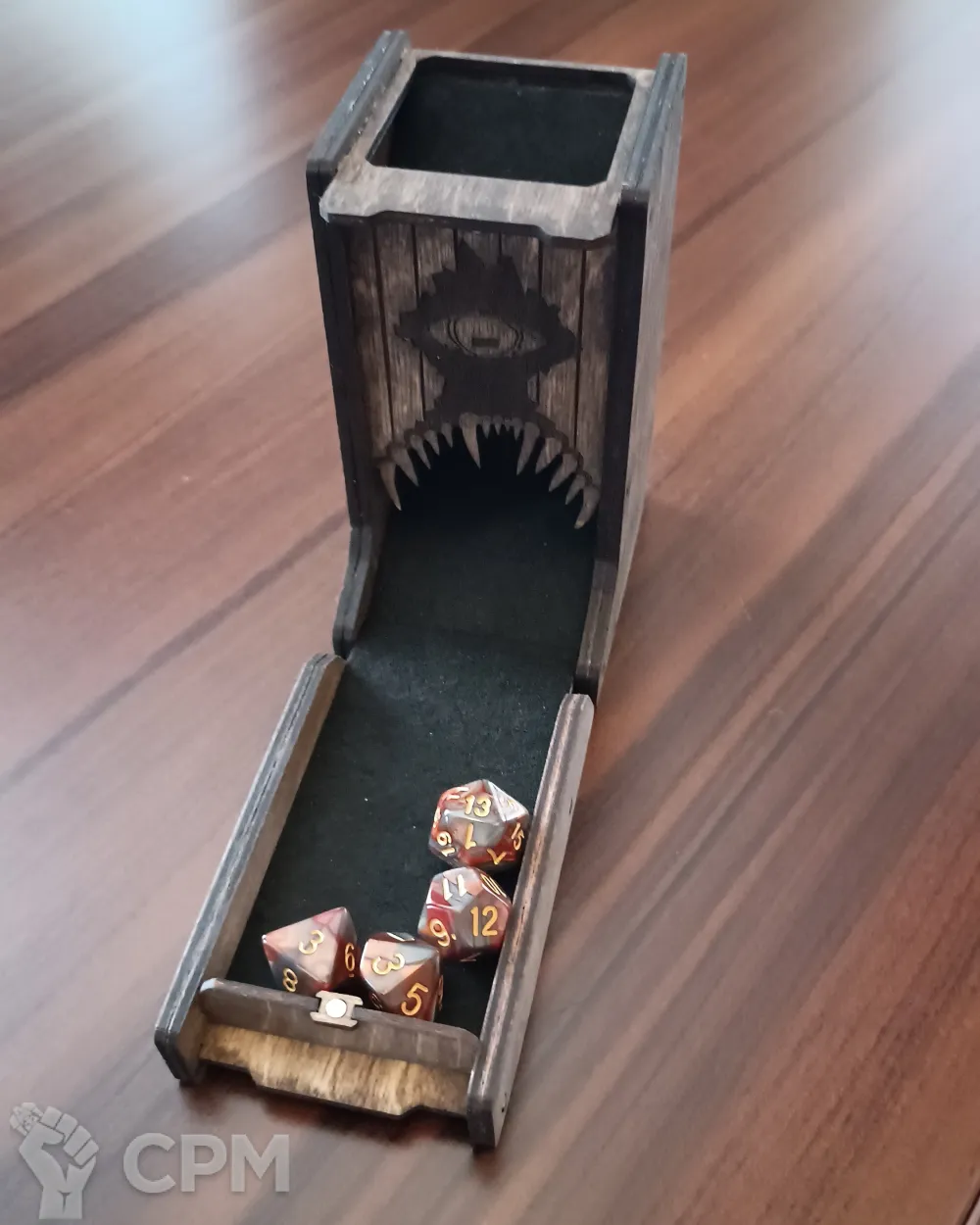 Хитрый дизайн: В сложенном виде выглядит как обычный шкафчик, но стоит его раскрыть – и перед вами жуткая пасть с оком, наблюдающим за каждым броском.