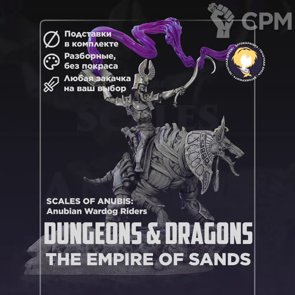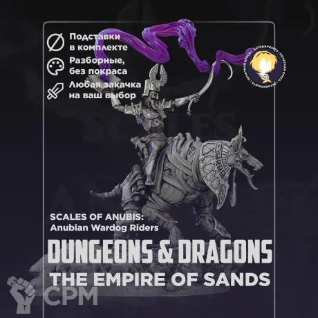 Empire of Sands: Scales of Anubis — серия моделей от Archvillain Games с тематикой Анубиса и сущностей подземного мира: сфинксов‑собирателей душ, жрецов и тематических воинов.