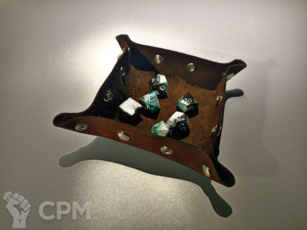 Итак, встречайте! Дайстрей - дайсница - подстаканник - коврик для мыши! Крайне многофункциональный предмет! Можете выкинуть большую часть своего ненужного хлама и оставить только этот кусок кожи! Налетай, торопись, покупай живопИсь! 1500 тугриков.