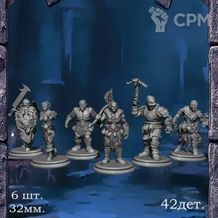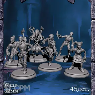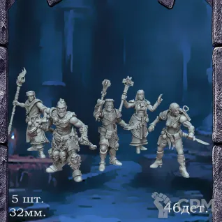 Герои - Паладин, Варвар, Жрец, Маг, Разбойник (32мм. 5шт.)