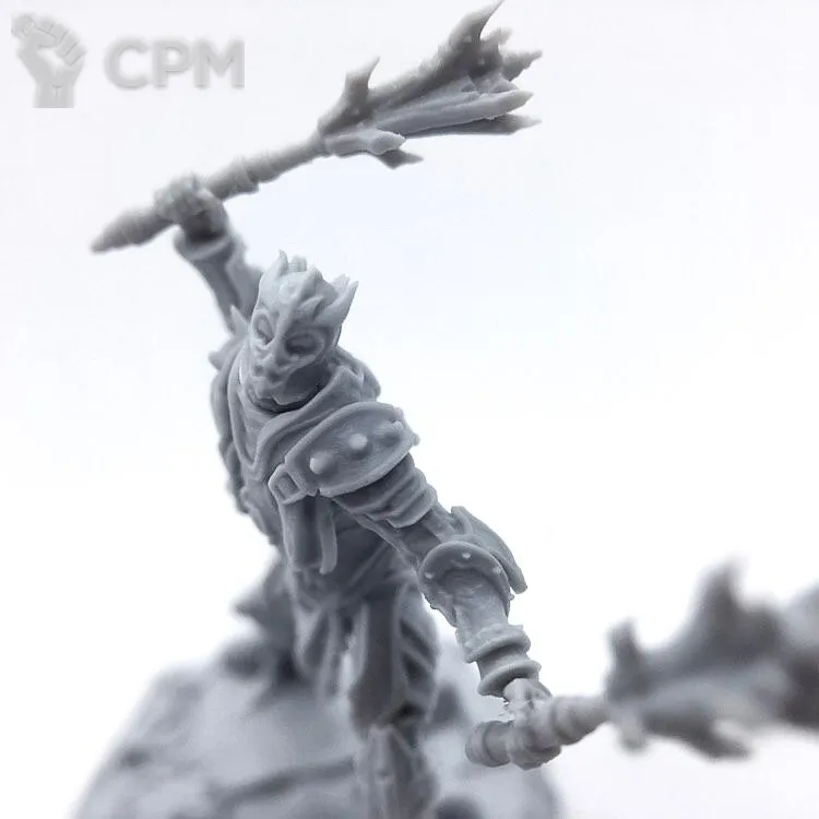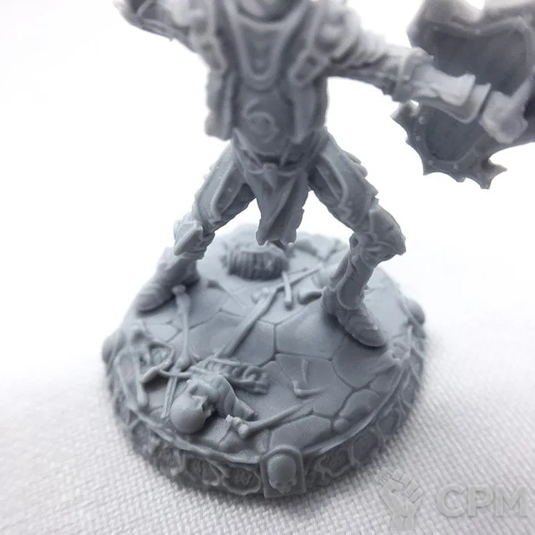 В комплект входят 4 варианта головы (шлем с закрытым забралом, шлем с открытым забралом, череп, череп с остатками кожи + опция короны); 5 вариантов кистей (меч, щит, секира и 2 булавы); 2 подставки 25мм (фирменная и обычная черная).
