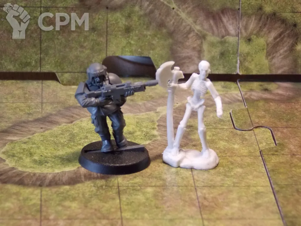 Скелет с алебардой. Гвардеец рядом для масштаба, в комплект не входит.