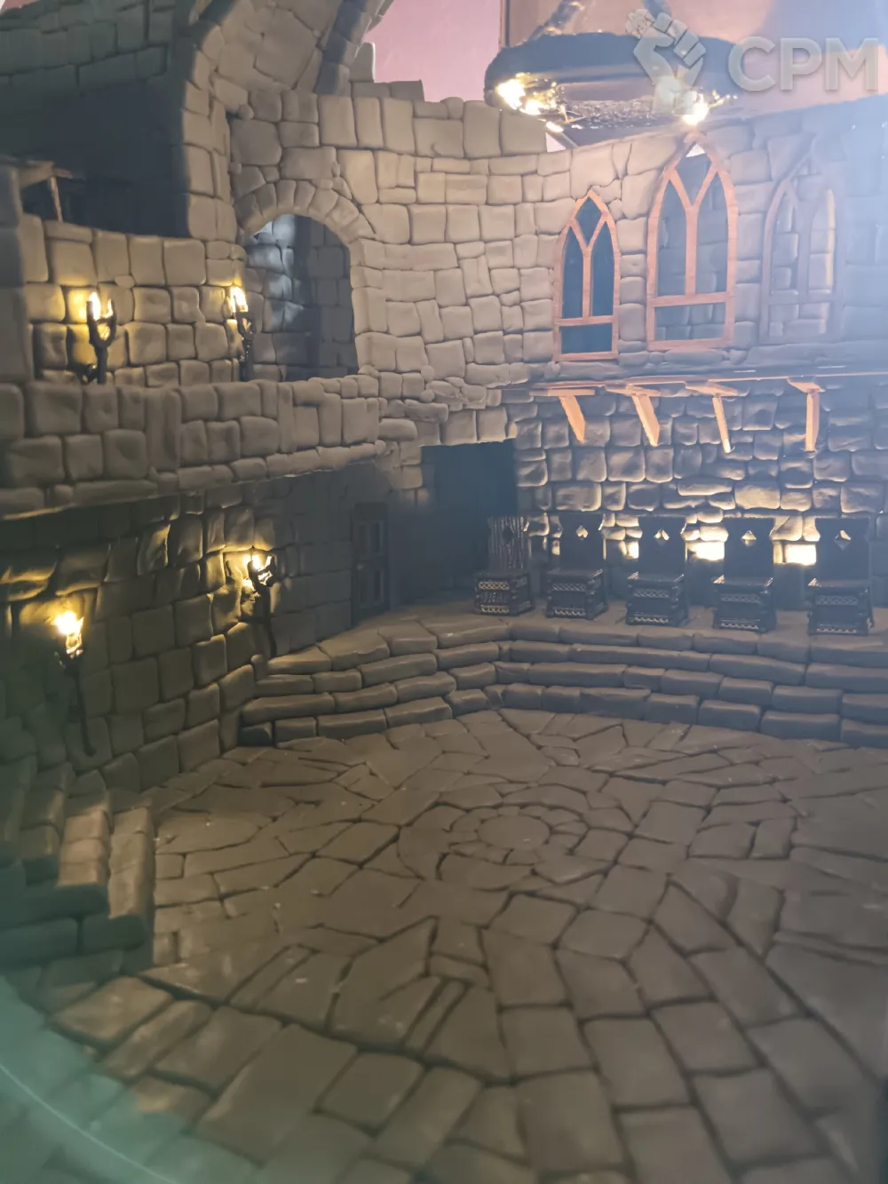 Внутри замка встроена светодиодная подсветка.Данный макет послужит отличной основой для партии игры в ДнД, или, как часть тематической выставки.