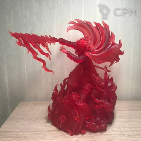 Ренгоку Кёдзюро - пламенный столп из аниме «Клинок рассекающий демонов» высотой 25 см распечатан смолой Elegoo Standart полупрозрачный красный на принтере Elegoo Saturn 4 ultra 12k!