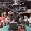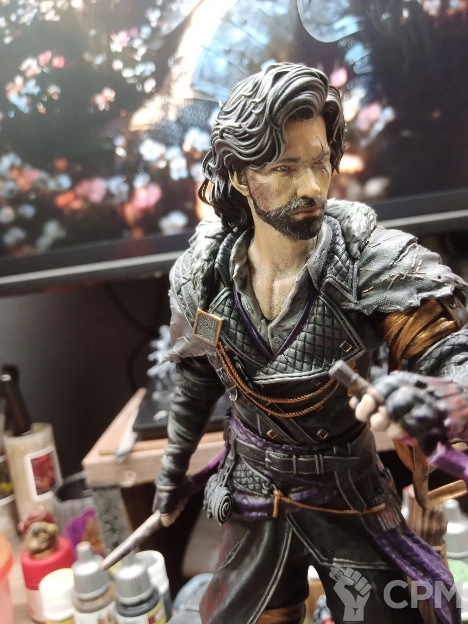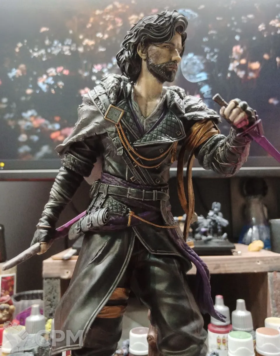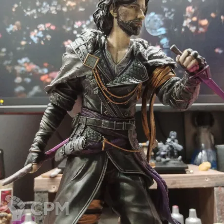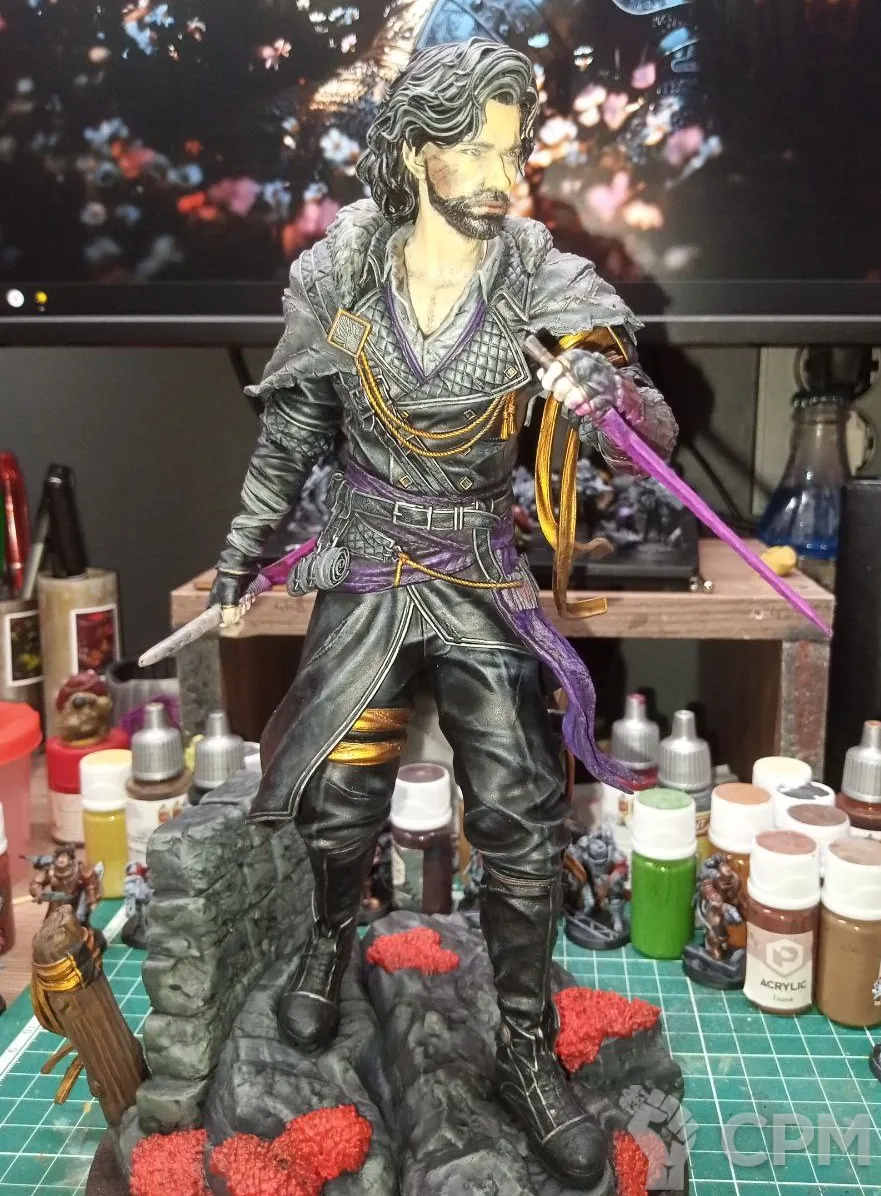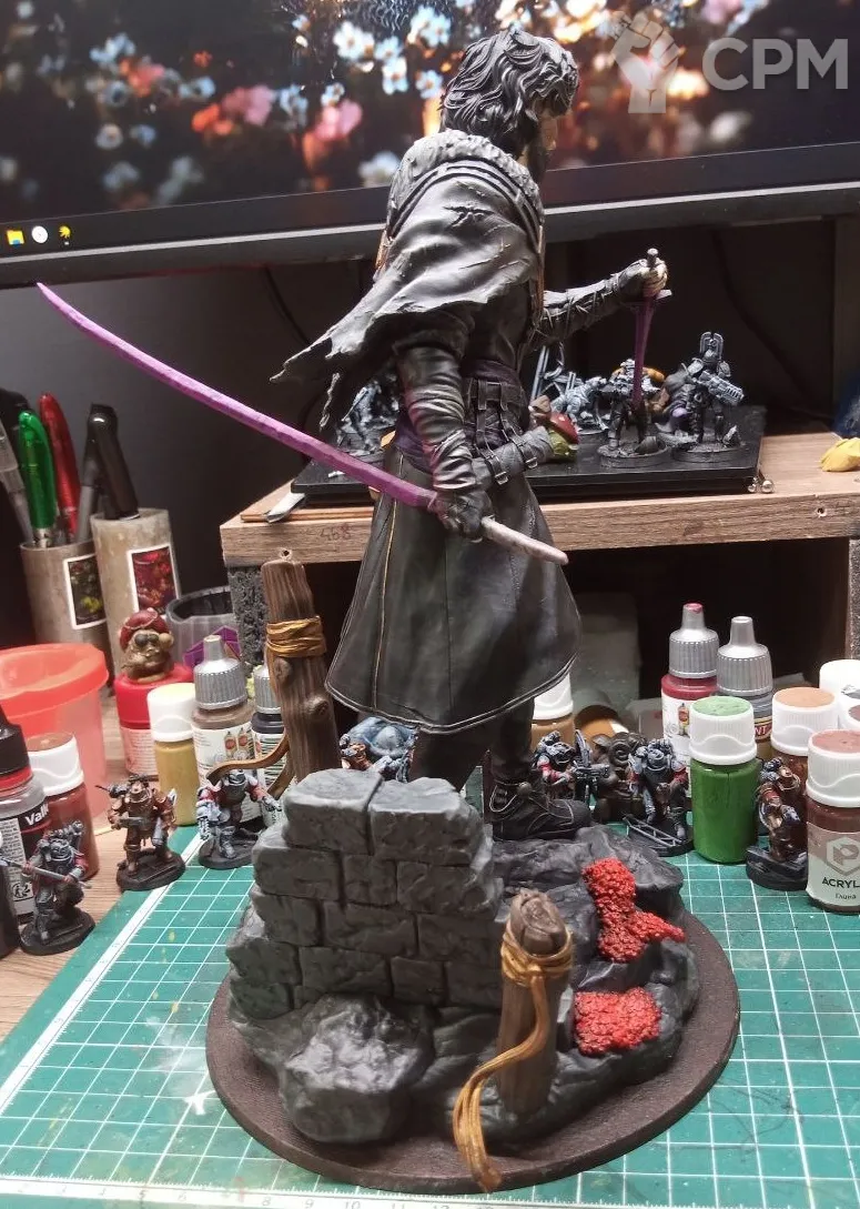 3Д печать, крупные части пустотелые, мелкие полные. Окрашено, покрыто лаком. Склеено не полностью, для того что-бы упаковать для безопасной транспортировки, необходимо будет приклеить руки и тело к подставке.