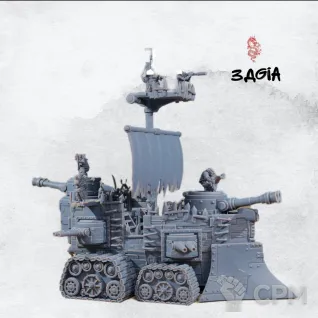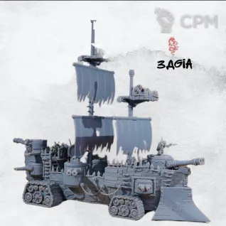 А вот второй грот танк ( https://minifreemarket.com/catalog/games-with-miniatures/warhammer-40000/orks/grot-tank-59123 )это нечто. Гусеницы от верхнего, передняя часть , как я понял, общая. Только задняя часть от нижней модели. И обвес о нижней модели. Если это нижняя модель то где брызговики?