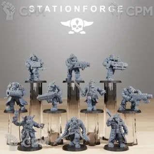 Хорощее качество печати. Немного рознятся пропорции у моделей в отряде, но это проблема набора, а не принтера. Продавец докинул битсы. Очень приятно.